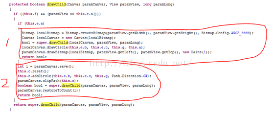 RevealFollowButton的drawChild方法沒什麼內容,基本是調用了父類,那麼我們來看RevealFrameLayout的drawChild方法。