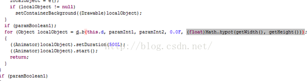 一個Animator對象,其實這句代碼我是沒看懂的,但邏輯很簡單,設置一個Animator,定時500ms,在這個過程中修改圓形半徑,然後刷新。