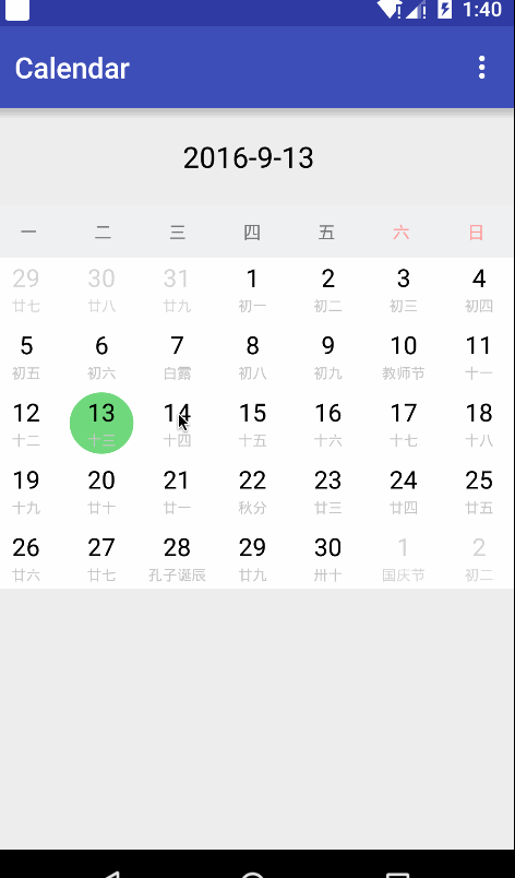 以上就是Android 日歷控件的資料整理,後續繼續補充相關資料,謝謝大家對本站的支持!