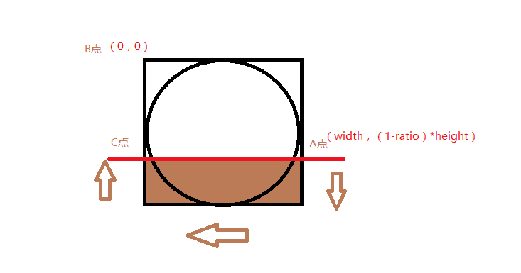 因為坐標是從B點向下和向右正向延伸的,則A點的坐標為(width,(1-ratio)*height),其中width為bitmap的寬,height為bitmap的高。我們先將mProgressPath.moveTo到A點,然後從A點順時針方向確定path的各個關鍵點,如圖,則代碼如下: