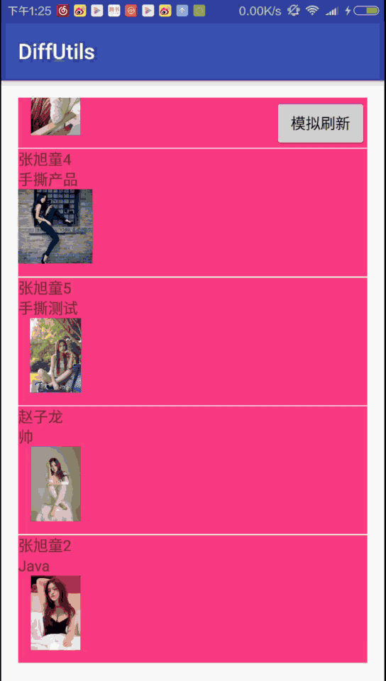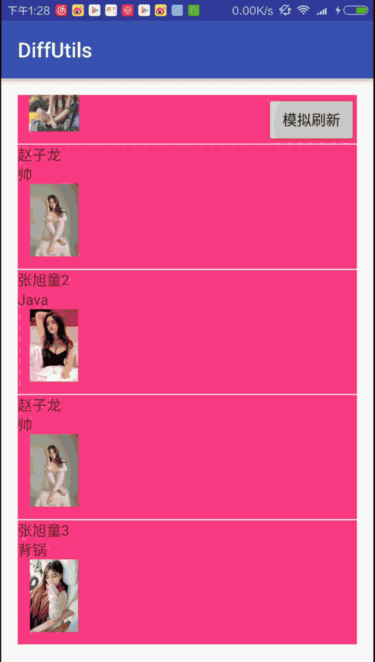 1 先介紹DiffUtil的簡單用法,實現刷新時的“增量更新”效果。(“增量更新”是我自己的叫法)