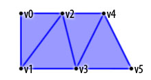 GL_TRIANGLE_STRIP:繪制一組相連的三角形。對於奇數點n,頂點n,n+1和n+2定義了第n個三角形;對於偶數n,頂點n+1,n和n+2定義了第n個三角形,總共繪制N-2個三角形。