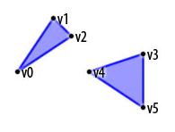 GL_TRIANGLES:把每三個頂點作為一個獨立的三角形。頂點3n-2,3n-1和3n定義了第n個三角形,總共繪制N/3個三角形。