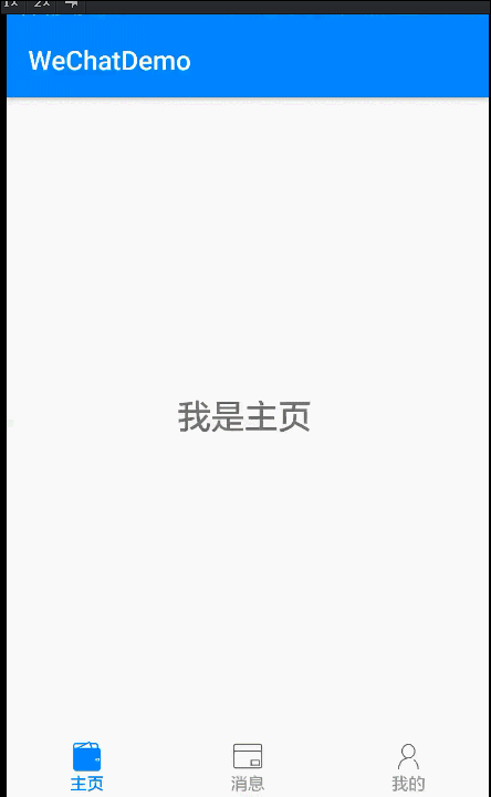 大家看到微信首頁切換效果有沒有覺得很炫,滑動切換,點擊底部bar瞬間切換,滑動切換漸變效果,線上效果圖:
