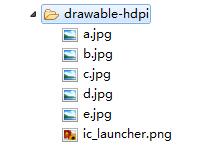 我在 res\drawable-hdpi 文件夾中放置了幾張圖片,以演示用