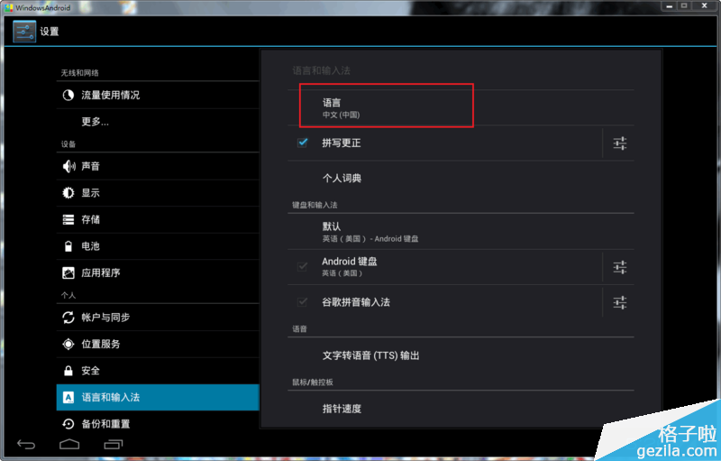 咋是英文的!?別著急,安卓自帶多國語言滴,我們現在就是設置吧!點擊桌面上的設置按鈕,進入language項,更改即可!