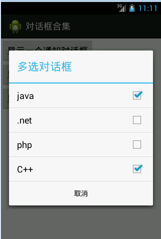 builder.setTitle("多選對話框");
