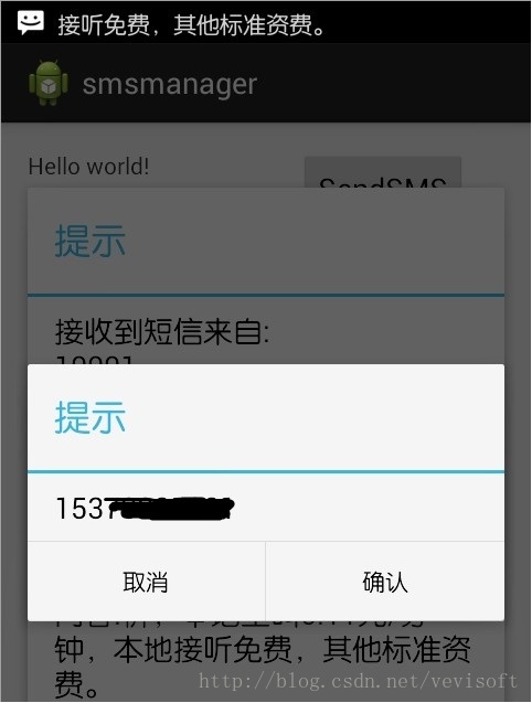 那麼我們發送短信,然後監聽得到此短信,然後分解字符串那麼就可以得到手機號了。