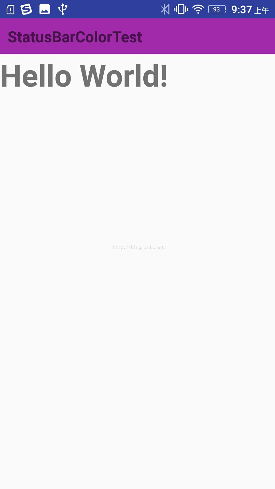 需注意的是, tintManager.setStatusBarTintResource(R.color.top_bg_color);這一步的顏色值(即把你的狀態欄顏色與你的標題欄顏色保持一致)要寫在color.xml中去,如果用Color.praseColor則會報錯。