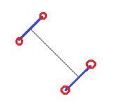 在這張圖裡,黑色細線是我們拿到的兩個觸摸點相連得到的。當畫筆寬度大於1(比如為10)時,其實經過這條黑線的兩個端點並且與這條黑線垂直相交的兩條線(藍線),就可以計算出來,藍線的長度就是畫筆的寬度,結合這些就可以計算出紅色的四個點。而紅色的四個點就圍住了線段,形成路徑。
