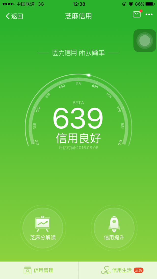 先看下iOS的芝麻信用分截圖