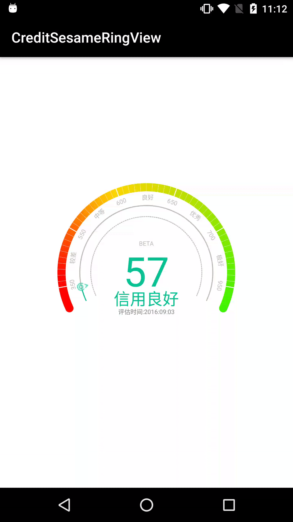 繪制中間的信用分值,信用等級,評估時間等文本,這個比較簡單,直接drawText,依次高低排列繪制即可.