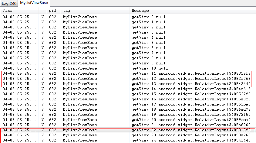 Log.v("MyListViewBase", "getView " + position + " " + convertView);