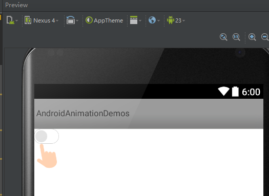 <?xml version="1.0" encoding="utf-8"?> <LinearLayout xmlns:android="http://schemas.android.com/apk/res/android" android:id="@+id/activity_animation_main" android:layout_width="match_parent" android:layout_height="match_parent" android:gravity="center" android:orientation="vertical"> <com.androidanimation.animationview.SwitchOnAnimView android:id="@+id/switch_on_anim_view" android:layout_width="wrap_content" android:layout_height="wrap_content"/> </LinearLayout>