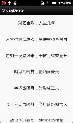 接下來就是截獲ListView的touch事件了,自定義一個SlidingDeleteListView,繼承自ListView,重寫onTouchEvent()方法: