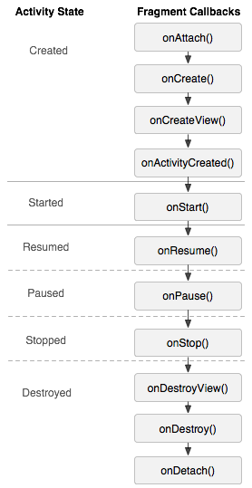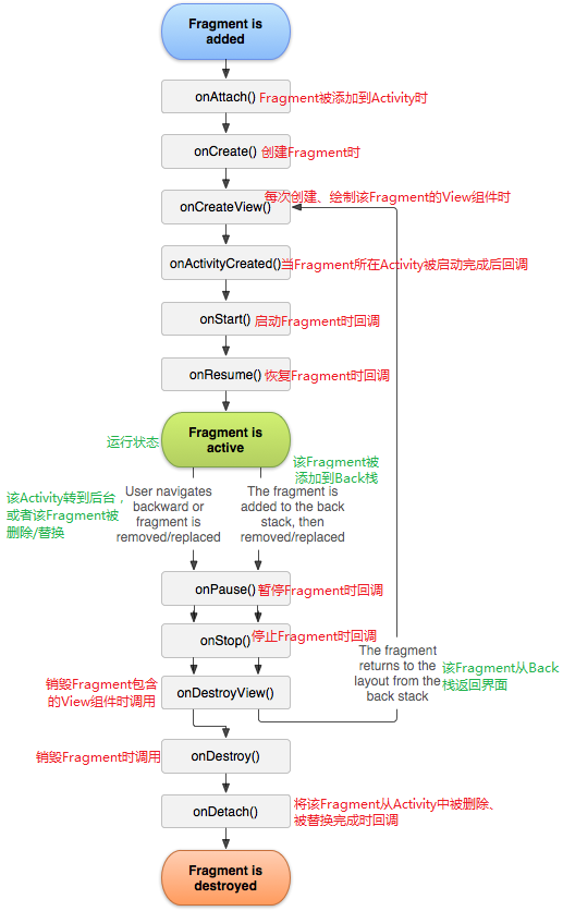 2)下面我們來看一下Fragment的生命周期,並和Activity的生命周期做對比: