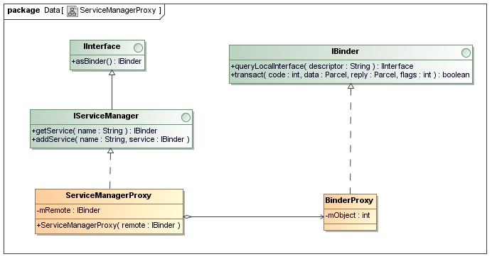 我們要獲取的Service Manager的Java遠程接口是一個ServiceManagerProxy對象的IServiceManager接口。我們現在就來看看ServiceManagerProxy類是長什麼樣子的: