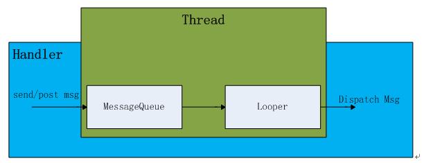 通過一系列的包涵關系,最終Looper、Handler、Message、MessageQueue即發生關聯,從而形成一個閉合,開啟消息循環。