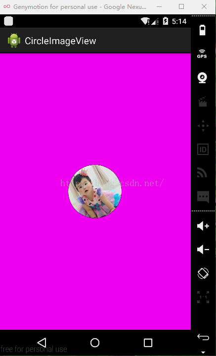 </ xmlns:tools="http://schemas.android.com/tools" android:layout_width="match_parent" android:layout_height="match_parent" android:background="#ff00ff" > <com.example.circleimageview.CircleImageView android:id="@+id/imageview" android:layout_width="100dp" android:layout_height="100dp" android:layout_centerInParent="true" android:src="@drawable/control_image" /> </RelativeLayout>