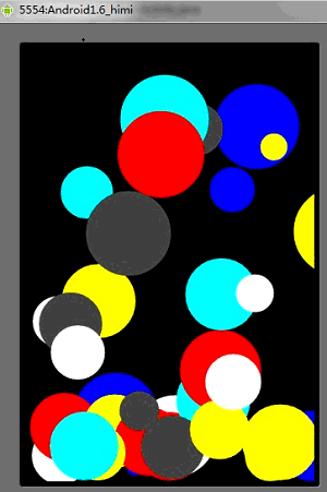 當你點擊模擬器任意按鍵的時候會隨機在屏幕上生成一個隨機大小、隨機顏色、隨機位置、不停閃爍的一個圓形,並且圓形都擁有重力,在做自由落體,當圓形觸到屏幕底部的時候會反彈,並且反彈的高度一次比一次低!(呵呵,玩的有點H,狂點按鈕搞的滿屏都是 - -)