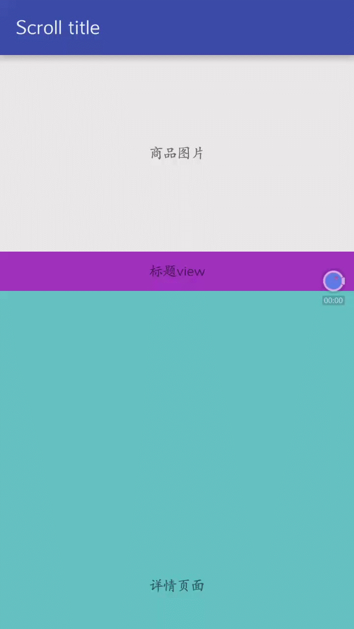 當y方向的滾動距離小於中間的內容middleView到頂部的距離時,middleView理所當然的會隨這頁面向上滑動而消失,我們顯示懸浮view,從而實現middleView一直卡在頂部的效果。
