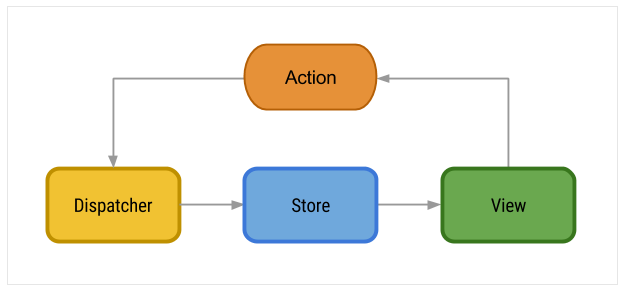 . Dispatcher: 中心樞紐,傳遞所有的action,負責把它們運達每個Store。
