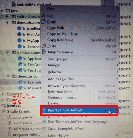 拿到 android 目錄下的 assets 下的json01.txt文件 是一段json數據,讓後進行解析,解析後將數據顯示。 分析:這個需求就跟android下的資源有關,而咱們利用 Robolectric 做單元測試,並且不需要模擬機或真機的支持。