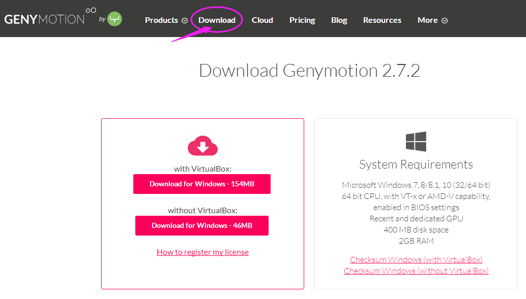 進入網站https://www.genymotion.com/,會發現要求先注冊才能下載安裝包。