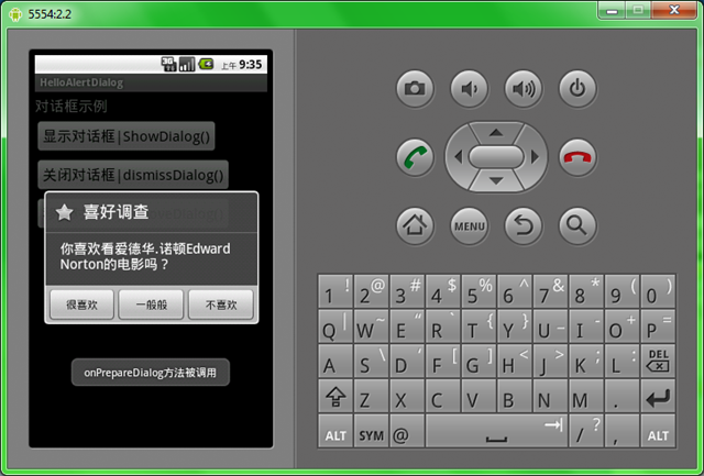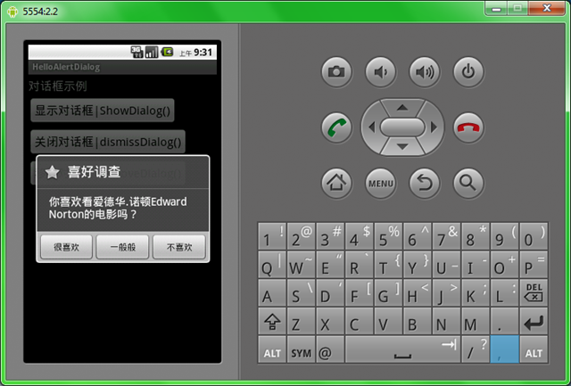 AlertDialog對話框是Dialog的子類,它提供一個圖標,一個標題,一個文本和3個按鈕。我們在Activity裡可以自行創建和顯示Dialog,也可以通過Activity的方法對其進行管理。我們可以通過下面的例子學習它的使用方法,同樣請注意代碼中的注釋。