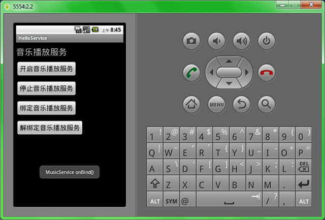 下面我們用一個可以控制在後台播放音樂的例子來演示剛才所學知識,同學們可以通過該例子可以明顯看到通過綁定方式運行的Service在綁定對象被銷毀後也被銷毀了。