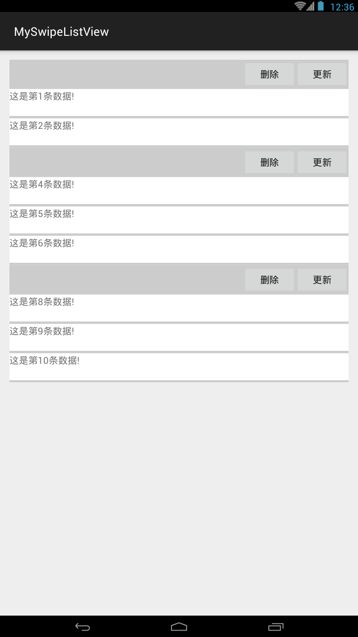 4. SwipeListView和其他ListView一樣,也需要Adapter,使用方法也是一樣的。這裡就不詳細講了。