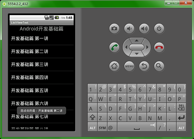點擊其中一個列表項的時候會觸發Item的onClick事件,彈出一個氣泡提示框;在一個選項上長時間按著也會觸發LongClick事件,彈出另一個氣泡提示框。