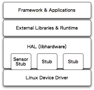 撇開這些爭論,學習Android硬件抽象層,對理解整個Android整個系統,都是極其有用的,因為它從下到上涉及到了Android系統的硬件驅動層、硬件抽象層、運行時庫和應用程序框架層等等,下面這個圖闡述了硬件抽象層在Android系統中的位置,以及它和其它層的關系: