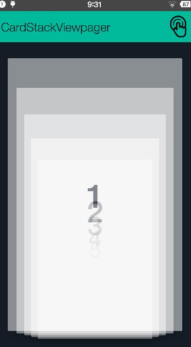 根據這個日志很明顯的可以判斷得到:由於我現在設置的setOffscreenPageLimit(int limit)值為4,所以可以看到position有上面幾種情況,顯而易見,每個position對應了一張卡片,這個時候界面的效果如圖: