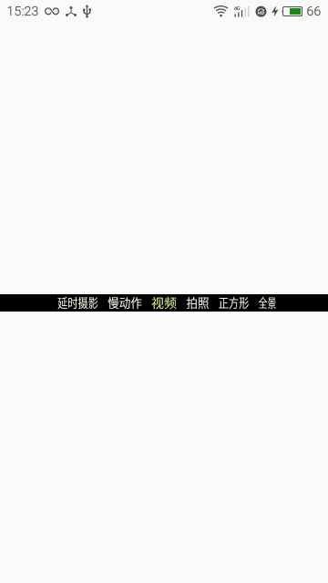 IOS相比於Android,動畫效果是一方面優勢,IOS相機切換時滑動的動畫很不錯,看著是有一個3D的效果,而且變化感覺很自然。Android也可以通過Graphics下面的Camera可以實現3D效果,開始嘗試著用這個做了一下,效果不理想,滑動之後各組文字之間的距離就變了,從立體空間來說這是合邏輯的,但是看著很別捏。IOS相機的滑動效果文字之間的間隔在滑動的時候是不變的。
