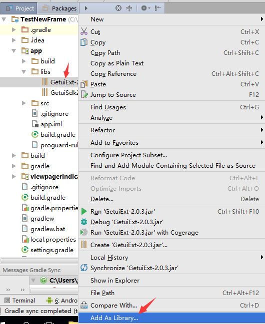 寫下這句話後,再直接復制粘貼jab包到libs目錄下邊即可,自動add as library。