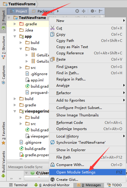 4.打開open Module Settings看到viewpagerindicatorlibrary 已經加入進來