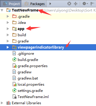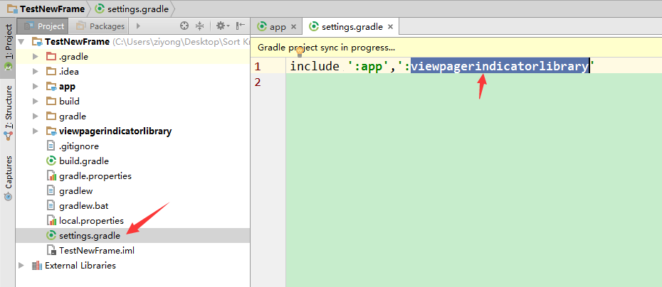 2.項目根目錄下settigs.gradle添加:include ':App',':viewpagerindicatorlibrary'