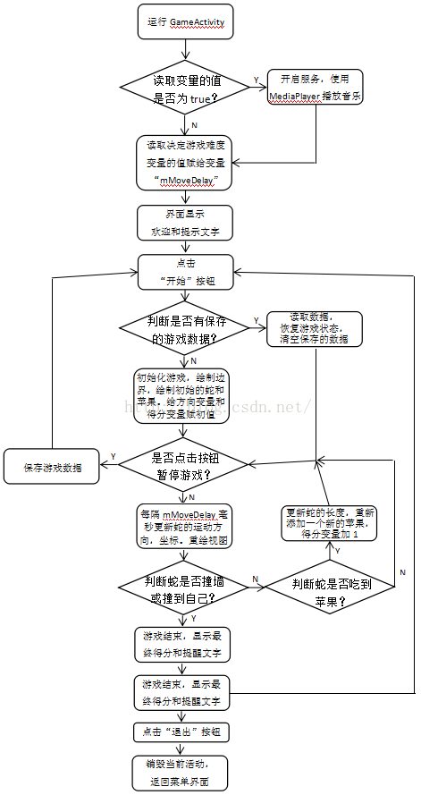下面是游戲效果圖,運行界面和暫停界面。我把邏輯流程圖也貼出來,有什麼問題大家可以留言,多多交流!