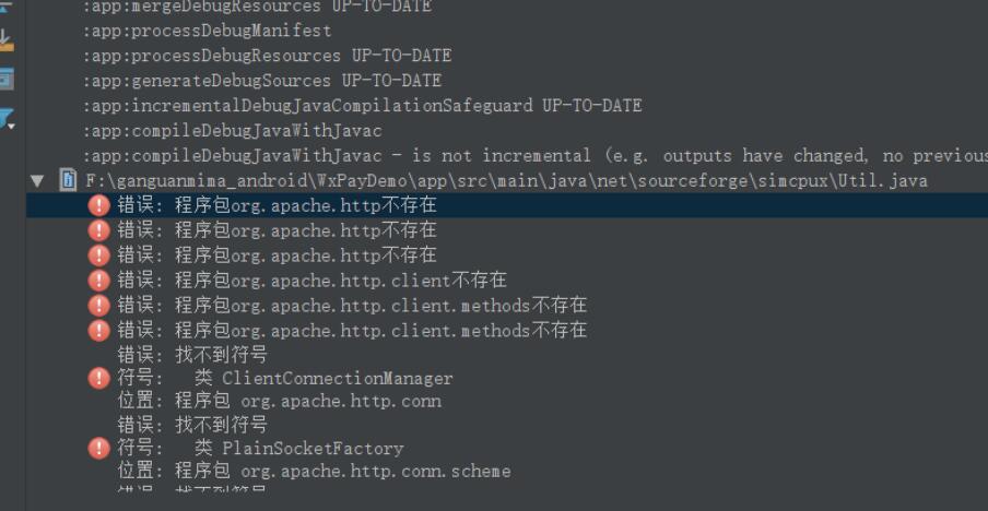 首先是導入微信的Demo,去官方下載了SimpleDemo後,發現一堆錯誤,好吧,首先是SDK的問題,這個就不多做贅述了。