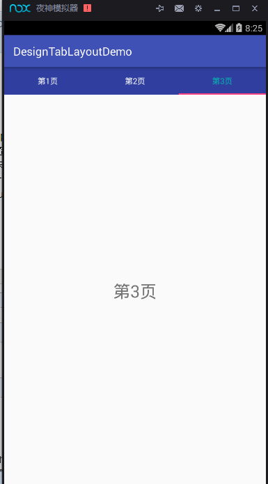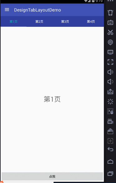 <?xml version="1.0" encoding="utf-8"?> <LinearLayout xmlns:android="http://schemas.android.com/apk/res/android" xmlns:tools="http://schemas.android.com/tools" xmlns:app="http://schemas.android.com/apk/res-auto" android:layout_width="match_parent" android:layout_height="match_parent" android:orientation="vertical" tools:context="com.example.nanchen.designtablayoutdemo.MainActivity"> <android.support.design.widget.TabLayout android:layout_width="match_parent" app:tabBackground="@color/colorPrimaryDark" app:tabTextColor="@android:color/white" app:tabSelectedTextColor="#04b4ae" android:layout_height="wrap_content" android:id="@+id/main_tab_layout"/> <android.support.v4.view.ViewPager android:layout_width="match_parent" android:layout_height="0dp" android:layout_weight="1" android:id="@+id/main_vp"/> </LinearLayout>