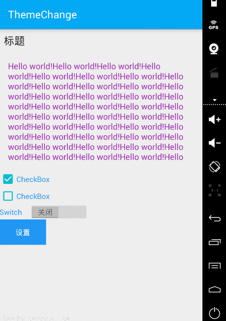 好了,言歸正傳,現在我們需要實現的是主題切換功能,關於主題切換其實是切換整個App的顏色風格、排版風格、字體風格等,其中並不會有過多的圖片資源的切換,如有過多的圖片的更換那就是換膚的功能了。