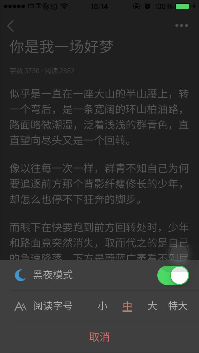 在文字類的App上面基本上都會涉及到夜間模式、就是能夠根據不同的設定、呈現不同風格的界面給用戶、而且晚上看著不傷眼睛、實現方式也就是所謂的換膚(主題切換)、對於夜間模式的實現網上流傳了很多種方式、這裡先分享一個方法給大家、通過設置背景為透明的方法、降低屏幕的亮度與色度。