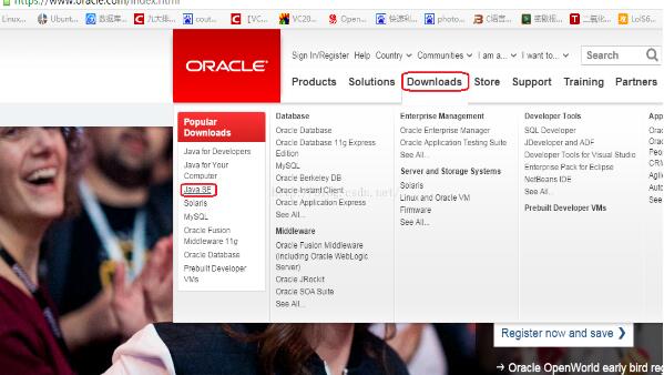 a, 輸入網址https://www.oracle.com/進入oracle官網,如下,點擊Downloads欄下的Java SE,進入Java SE的下載界面: