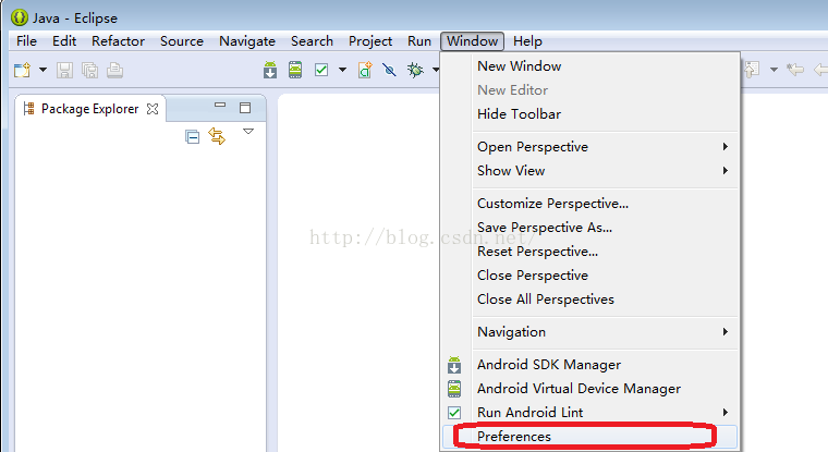 打開eclipse之後,點擊Window菜單---》Preferences ---》Android,對右邊的SDK location目錄選擇已解壓好的SDK目錄,點擊Apply,這樣,SDK就搭配好了:
