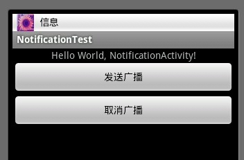 notification.setLatestEventInfo(NotificationActivity.this, "你的一條信息", "來自張三的信息", pendingIntent);