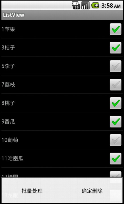 利用CheckBox選中一個或多個item,最後批量刪除它們。