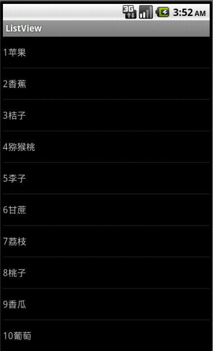 static String str[] ={"1蘋果","2香蕉","3桔子","4猕猴桃","5李子","6甘蔗","7荔枝","8桃子","9香瓜","10葡萄","11哈密瓜","12桂圓","13龍眼","14","15","16","17","18","19","20"};