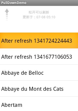 public class PullDownActivity extends Activity implements OnPullDownListener, OnItemClickListener{