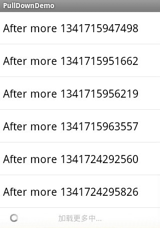 以上所述是小編給大家介紹的Android程序開發之Listview下拉刷新上拉(滑動分頁)加載更多,希望對大家有所幫助,如果大家有任何疑問請給我留言,小編會及時回復大家的。在此也非常感謝大家對本站網站的支持!